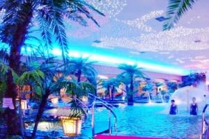 溫泉頭頂日月星辰,耳聞天簌之聲,流水飛瀑,經營面積達20000平方米,溫泉水主要來自地下1800 米,集溫泉養生、健康、休閑、度假旅游為一